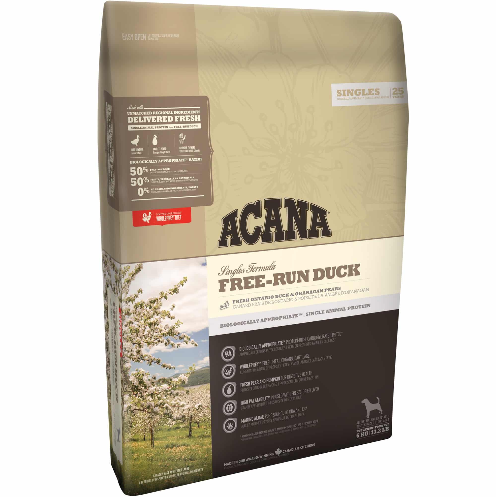 מזון חד-חלבון המבוסס על בשר ברווז ואגסים לכל הגזעים ושלבי החיים.