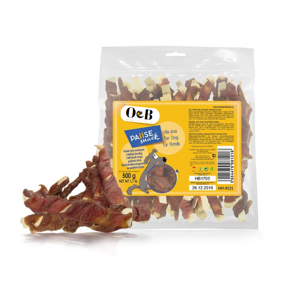 חטיף לכלב 500 גר' מקלות דג עם ברווז רך O&B
