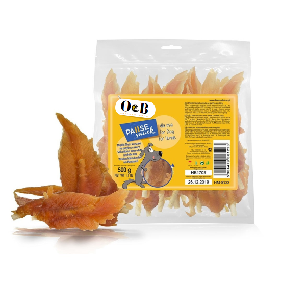 חטיף מקלות עור מצופה פילה עוף רך או אנד בי
