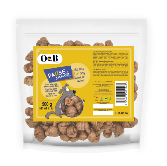 חטיף לכלב 500 גר' עצמות עוף קלועות 6-7 ס"מ O&B