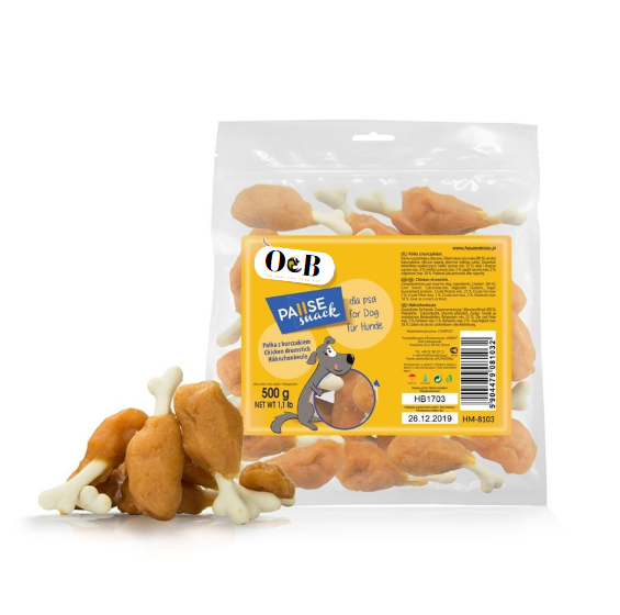 חטיף לכלב 500 גר' שוקי עוף O&B